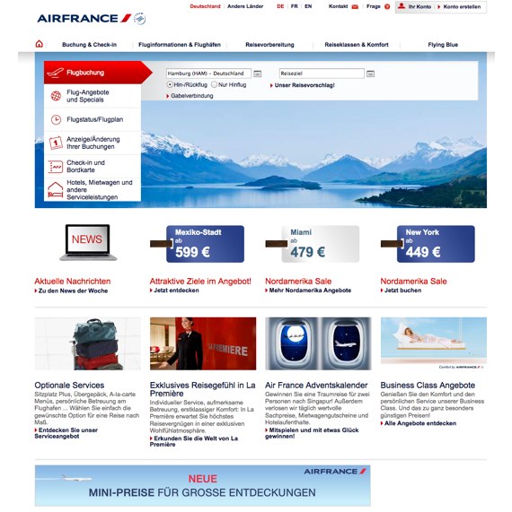 AirFrance.de - Buchen Sie Ihren persönlichen Flug bei der französischen Airline im Internet