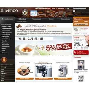 Sparen Sie noch ein paar Euro mehr, indem Sie Ihren Allvendo Gutscheinwert bei der Bestellung gültig machen, denn durch die entsprechenden Gutscheincodes verringert sich der Bestellwert zusätzlich. Eventuell genießen Sie auch gerne mal einen schmackhaften Espresso, denn auch in dieser Hinsicht sind Sie bei diesem Anbieter genau an der richtigen Adresse. Leben Sie Ihre Interessen hier und jetzt aus, denn Sie können sich auch gleich noch die passende Espressomaschine bestellen. Die günstigen oder professionellen Maschinen entsprechen garantiert Ihrem Budget, bestellen Sie doch auch gleich noch die passenden Gläser und Tassen mit dazu!