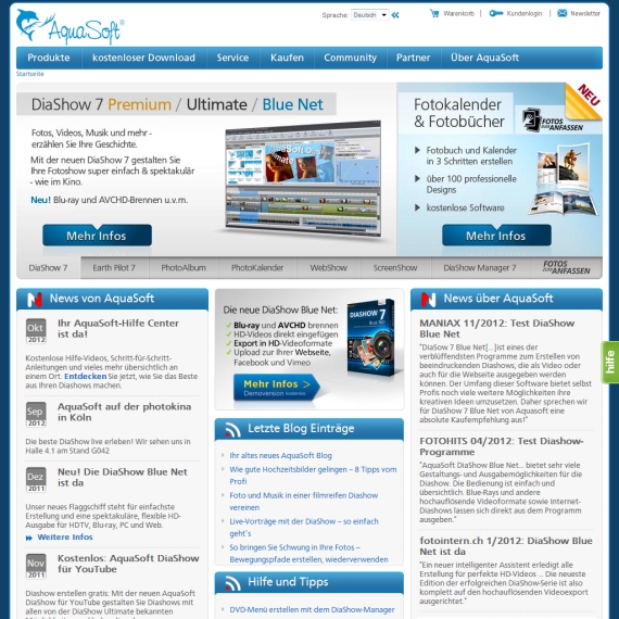 Sehen Sie sich vor allem die attraktiven Angebote für Diashows an, die Ihnen von AquaSoft geboten werden, denn hier erwarten Sie die perfekten Softwarepakete als optimale Lösung. Auch für den Fall, dass Sie sich für das Thema Videos oder Musik interessieren, können Sie hier fündig werden, denn es steht Ihnen alles offen. Holen Sie sich ein Multimediaerlebnis der Extraklasse, also warum zögern Sie noch? Lassen Sie Ihre Fotos spektakulär wirken und brennen Sie diese auf Wunsch sogar auf eine DVD, denn fast alles ist möglich. Wählen Sie aus den vielfältigen Gestaltungsoptionen genau das Richtige aus, was Sie sich vorstellen und sehen Sie sich den Earth Pilot an, damit Sie keinesfalls etwas verpassen. So können Sie um die ganze Welt fliegen und alles erkunden, was Ihnen bestimmt großen Spaß machen wird. Sie bevorzugen ein Fotoalbum? Auch für diesen Fall erwartet Sie genau die richtige Software. Gestalten Sie alles individuell und ganz persönlich, wenn Sie Ihr Fotoalbum bearbeiten und setzen Sie Ihre eigenen Vorstellungen zu 100 Prozent um. Lassen Sie auf Wunsch auch gleich alles genau drucken, wie Sie es planen, denn AquaSoft ist Ihnen dabei behilflich. Wenden Sie tolle Effekte an und machen Sie eine Collage, um alles perfekt in Szene zu setzen. Gerne können Sie auch Ihren eigenen