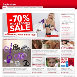 Wenn Sie auf der Suche nach einem ganz besonderem Sexspielzeug sind, sollten Sie unbedingt den Online Shop von Beate Uhse besuchen. Hier finden Sie ein riesiges Sortiment vor, das alles zu bieten hat, was der Markt hergibt. Selbst die neuesten und innovativsten Artikel werden hier angeboten, auch dann, wenn Sie gerade erst in den vereinigten Staaten von Amerika erschienen sind. Egal was Sie suchen – hier werden Sie fündig! Lockern Sie Ihren Alltag auf und gönnen Sie sich etwas ganz Spezielles! Sie wollen wieder frischen Wind in Ihr Schlafzimmer bringen? Sorgen Sie für Abwechslung und besuchen Sie den Online Shop von Beate Uhse, denn hier warten viele interessante Waren auf Sie. Machen Sie sich die Vorteile des modernen Zeitalters zu Nutze und bestellen Sie über das World Wide Web. So muss es Ihnen nicht unangenehm sein, eine Filiale von Beate Uhse direkt und persönlich zu besuchen, denn diesen Weg können Sie sich durch die Onlinebestellung ganz leicht ersparen. Dieser Anbieter ist mittlerweile beinahe eine Legende geworden und auf dem ganzen internationalen Markt bekannt.