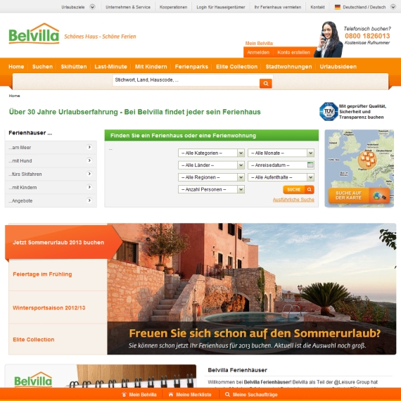 Belvilla hält mehr als 20.000 unterschiedliche Unterkünfte für Sie bereit, so dass ganz sicher das Richtige für Sie dabei ist. Die Seite ist zu 100 Prozent vertrauenswürdig, also machen Sie sich keine Sorgen, wenn Sie online buchen. Entscheiden Sie sich auch am besten noch für den kostenlosen Newsletter, um immer aktuelle Informationen zu erhalten. Die Seite wurde eigens vom TÜV geprüft und Sie können sich gerne bei Bedarf an die kostenlose Hotline wenden. Sichern Sie sich noch zusätzlich hervorragende Nachlässe mit Ihren Belvilla Aktionscodes!