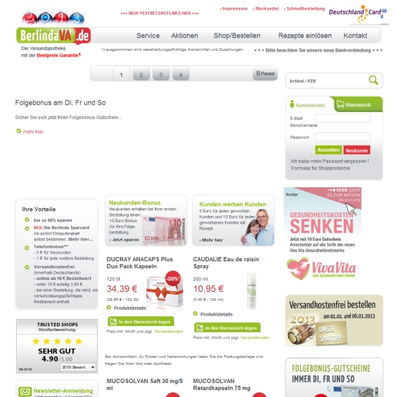 tolles Preisleistungsverhältnis, denn so günstig kaufen Sie Arzneimittel sonst nirgendwo ein. Sichern Sie sich als Kunde viele Vorteile und nehmen Sie sich Zeit, wenn Sie die Seite zum ersten Mal besuchen, denn das Angebot ist riesengroß. Surfen Sie durch die unterschiedlichsten Kategorien und informieren Sie sich mit nur wenigen Mausklicks konkret über die Produkte. Auf jeden Fall lohnt sich ein Abstecher zu den Bereichen Wellness und Wohlfühlen, wenn Sie sich selbst einmal wieder etwas Gutes tun wollen. Sie haben einen Vierbeiner zu Hause? Shoppen Sie für Haustier und sorgen Sie für die beste Pflege und