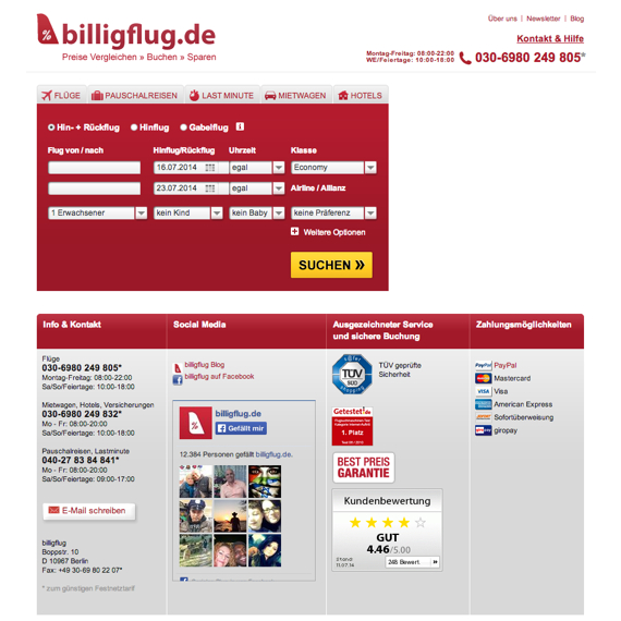 Das Angebot von Billigflug.de besticht durch eine gültige