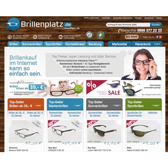 Brillenplatz.de - Sichern Sie sich eine topaktuelle Brille von Designermarken und kaufen Sie günstig Kontaktlinsen ein