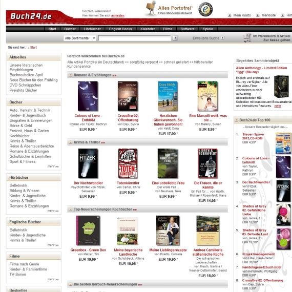 Onlineportal von Buch24 überzeugt sowohl Neukunden als auch Bestandskunden, wenn es um eine riesige Auswahl an Büchern und noch mehr geht, denn hier kann die Konkurrenz nicht mithalten. Starten Sie selbst einen Versuch, wenn Sie eine richtige Leseratte sind, und holen Sie sich Ihren ganz persönlichen Rabatt gleich jetzt und hier online. Es gilt, zuzuschlagen und dabei richtig viel Geld zu sparen, denn hier werden Sie kaum Nein sagen, wenn Sie das breit gefächerte Sortiment entdecken. Holen Sie sich Neuheiten und echte Klassiker in dieser