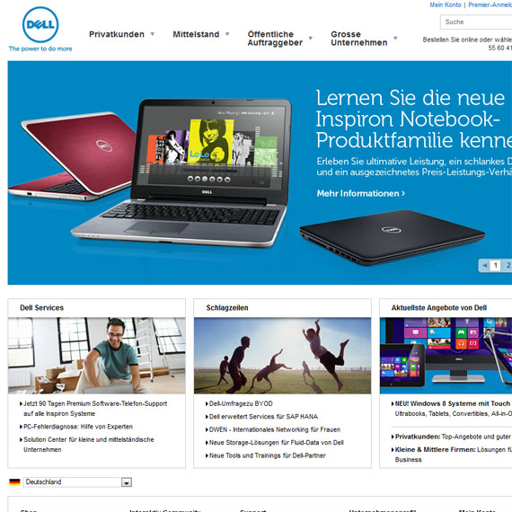 Wenn Sie von der namhaften Marke Dell überzeugt sind, sollten Sie sich unbedingt zum Online Shop dieses Herstellers begeben, um viele Schnäppchen zu entdecken, wenn es um neueste Computertechnik geht. Ganz egal, ob Sie Produkte für berufliche Zwecke oder für den privaten Bereich benötigen – hier können Sie immer zu fairen und günstigen Preisen einkaufen,