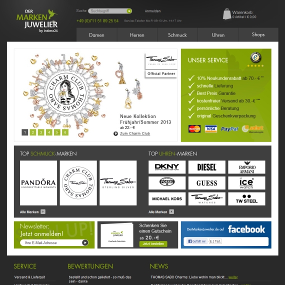Der Online Shop von Der Markenjuwelier besticht durch eine riesige Angebotsvielfalt an Schmuck und Uhren, in denen Sie nach Herzenslust flanieren können, denn der Webstore hat rund um die Uhr für Sie geöffnet. Sehen Sie sich in aller Ruhe bei den Markenherstellern um, denn hier kaufen Sie immer sicher ein und genießen ein tolles Preis-Leistungs-Verhältnis, sowie eine sichere Geld-zurück-Garantie. Wählen Sie aus den vielen unzähligen Zahlungsmöglichkeiten Ihre gewünschte Variante aus und bestellen Sie noch günstiger, indem Sie Ihren exklusiven und persönlichen