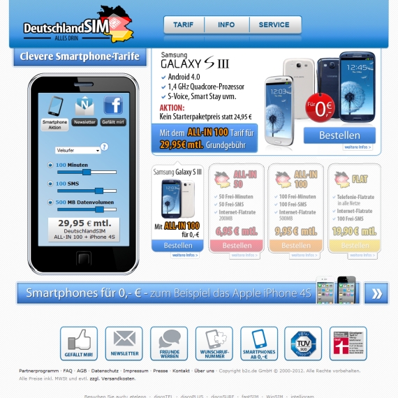 Portal von DeutschlandSIM, damit Sie Ihren passenden Tarif aussuchen können.
