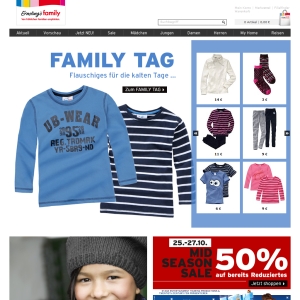 Wenn Sie online bei Ernstings Family einkaufen, können Sie jetzt sofort von tollen Rabatten profitieren. Entdecken Sie die virtuelle Einkaufswelt und shoppen Sie für die ganze Familie zu fairen Preisen. Die Vielfalt ist riesig und es wird Ihnen tolle Mode für jeden Typ geboten.
