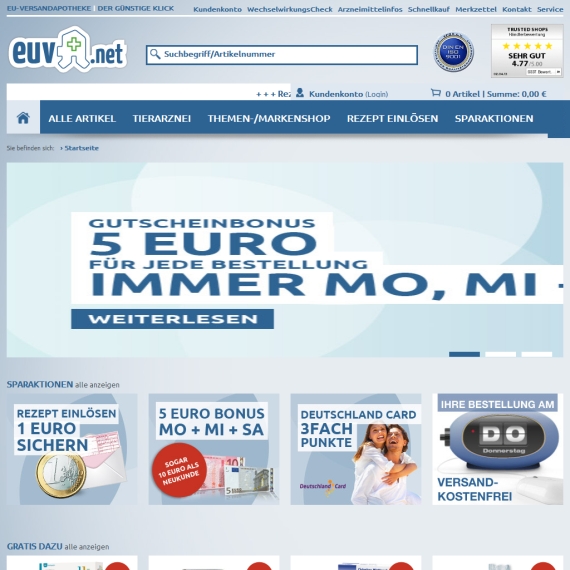 Sparcard holen und sich über dauerhafte Sparaktionen freuen. Am besten besuchen Sie die Seite, um sich selbst ein Bild zu machen. Sie haben ein Rezept und möchten dieses einlösen? Gerne kann Ihnen euva.net in diesem Fall ebenfalls Abhilfe schaffen. Bestellen Sie
