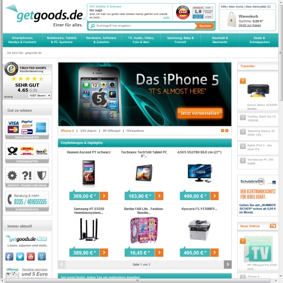 Das Motto von getgoods lautet: „Einer für alles“ und am besten überzeugen Sie sich selbst von dieser Firmenphilosophie. Nehmen Sie sich Zeit und klicken Sie durch die Angebote im Online Shop, um sämtliche Angebote mit eigenen Augen zu sehen und sich von den hervorragenden Preisen zu überzeugen.