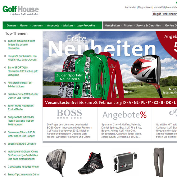GolfHouse, wenn Sie ein Anhänger der beliebten Trendsportart Golf sind. Egal, wonach sie auf der Suche sind – bei diesem online Unternehmen finden Sie alles, was das Herz begehrt. So machen Sie garantiert auf dem Golfplatz eine perfekte Figur, also worauf warten Sie noch? Erzielen Sie tolle Erfolge mit dem perfekten Equipment für das Golfspiel, welches Sie hier einkaufen können und das noch dazu zu einem fairen Preis-Leistungs-Verhältnis. Holen Sie sich genau das richtige Equipment, damit Sie Ihre Ziele erreichen, denn Qualitätsware ist hier Standard. Investieren Sie ein paar Euro mehr, damit Sie länger etwas von Ihren Sachen haben und erwerben Sie hochwertige Produkte in diesem Online Shop. Sehen Sie sich bei den namhaften Marken um, denn hier ist alles vertreten, was Rang und Namen hat. Trotzdem bleiben die Preise immer bezahlbar, also werden Sie Kunde bei GolfHouse!