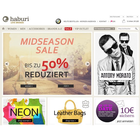 Markenkleidung zu Spitzenpreisen ohne vorgeschriebenen Mindestbestellwert bei Haburi, denn hier werden sowohl Neukunden als auch Bestandskunden stets mit einem