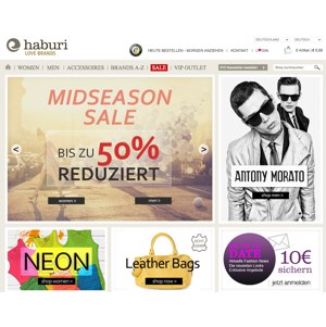 Haburi shoppen, denn hier können Sie ganz einfach laut Ihrem Gutscheinwert, der gültig ist, einkaufen, wenn sie ihre entsprechenden Gutscheincodes angeben. Zudem genießen Sie noch ein 14-tägiges kostenloses Rückgaberecht für den gesamten Warenwert und können aus insgesamt 80 Marken im Angebot wählen, also worauf warten Sie noch? Bestellen Sie ohne Mindestbestellwert, entscheiden Sie sich für eine der sicheren Zahlungsarten und zögern Sie nicht länger, sondern holen Sie sich Ihre persönlichen und exklusiven