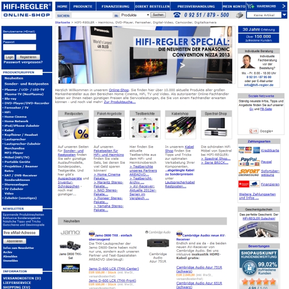 Lassen Sie Ihr Herz höher schlagen, wenn Sie den Online Shop von HIFI Regler besuchen und die tollen Markennamen entdecken, denn hier ist alles vertreten, was Rang und Namen hat. Angefangen bei