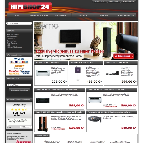 HifiShop24 ein richtiges Paradies vorfinden, denn hier können Sie Ihren virtuellen Warenkorb kostengünstig füllen. Entdecken Sie das reichhaltige Sortiment, das Ihnen dieser Online Anbieter zur Verfügung stellt, denn Sie finden ein wahrhaftes Paradies vor. Gerne können Sie sich aus Einzelkomponenten alles so zusammenstellen, wie Sie es sich immer schon gewünscht haben, wenn Sie beispielsweise auf der Suche nach einem beeindruckenden Heimkino sind. Begeben Sie sich in die Kategorien für