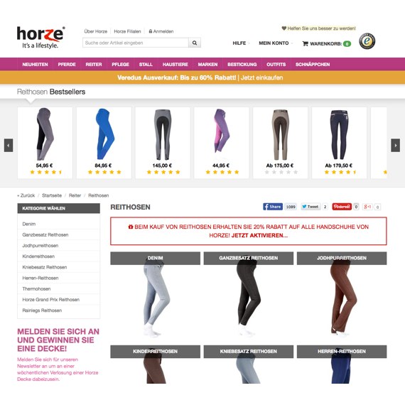 Horze.de - Sichern Sie sich die Top-Ausstattung zum Reiten und greifen Sie zu Hosen, Schuhen und Jacken