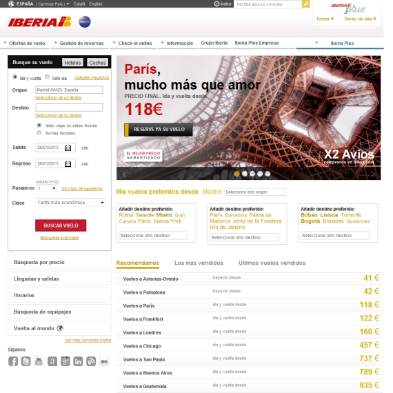 Ganz egal, ob Sie im beruflichen Sinne reisen oder auf der Suche nach Ihrem nächsten Urlaub sind und fliegen wollen – auf dem Portal von Iberia werden Sie immer fündig. Machen Sie sich keine Sorgen um die Qualität Ihrer Reise bzw. Ihres Urlaubs, denn hier sind Sie immer bestens aufgehoben. Buchen Sie entweder Ihren Hinflug oder Rückflug separat oder stellen Sie sich gleich hier online Ihren Urlaub zusammen, denn hier werden Ihnen keine Grenze gesetzt. Haben Sie schon daran gedacht, dass Sie eventuell in Ihrer Destination einen Mietwagen benötigen? Das und noch vieles mehr können Sie hier gleich auf der Seite online bei Iberia erledigen, also worauf warten Sie noch? Verfolgen Sie die Angebote und Aktionen dieses Anbieters auf jeden Fall auch in den sozialen Netzwerken, wie zum Beispiel auf Twitter oder Facebook, damit Sie immer über vorteilhafte Preise informiert werden. Machen Sie nie wieder Abstriche, wenn es um die Qualität Ihrer Reise geht, denn hier wissen Sie einen professionellen Partnern Ihrer Seite. Es spielt keine Rolle, welches Ziel Sie auf der Welt haben, denn Iberia bringt Sie überall hin und wieder gut zurück, also legen Sie los!