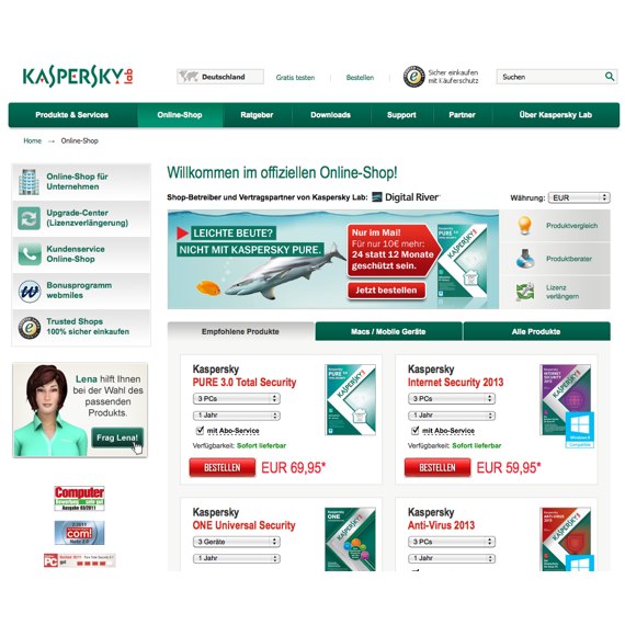 Das riesige Angebot auf der Seite von Kaspersky wird Sie prompt begeistern, so dass Sie einerseits mehr als einen Euro sparen und sich andererseits über das breit gefächerte Sortiment und diverse Pakete freuen können. Sie müssen keinen vorgegebenen Bestellwert erreichen, wenn Sie aktiv werden, denn hier ist jede Onlinebestellung gültig. Gerne können Sie einen kostenlosen Test machen, damit Sie wissen, was Sie sich bestellen und sich für einen direkten Onlineeinkauf entscheiden. Hier gibt es sowohl Lösungen für private als auch für Geschäftskunden, also worauf warten Sie noch? Holen Sie sich einen professionellen Antivirenschutz für Ihren Rechner und besorgen Sie sich auf unserem Portal noch Ihre Kaspersky Gutscheine, um diese gültig zu machen!