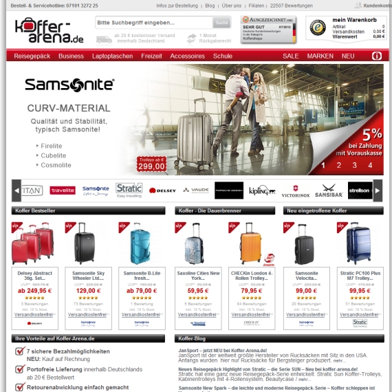 Koffer-Arena.de ist genau die richtige Adresse für Sie, wenn Sie eine neue Tasche oder einen Trolley kaufen wollen. Besuchen Sie den Online Shop und sehen Sie sich in Ruhe um, denn hier wird Kundenzufriedenheit an erste Stelle gesetzt. Sie können sich über eine riesige Auswahl an Produkten mit hervorragender Qualität freuen und auch in Sachen Service ist Koffer-Arena.de zu 100 Prozent verlässlich.