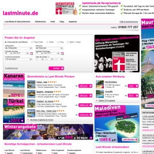 Sie reisen gerne kurzfristig und spontan? Dann sollten Sie Ihren zukünftigen Urlaub nur noch bei lastminute.de buchen, denn hier zahlen Sie niemals zu viel Geld für Ihre Reise. Besuchen Sie das Onlineportal, um sich selbst von dem riesigen Angebot zu überzeugen und vergleichen Sie die unterschiedlichen Deals, denn hier genießen Sie viele Vorteile. Reisen Sie in das Gebiet Ihrer Träume und finden Sie genau das, was Ihren Wünschen entspricht. Sehen Sie sich bei den Topangeboten um, damit Sie noch schneller fündig werden. Die Seitengestaltung ist besonders übersichtlich gehalten, so dass Sie prompt zu einem Ergebnis kommen. Fühlen Sie sich wie zu Hause und navigieren Sie kinderleicht auf dem Onlineportal von lastminute.de und machen Sie am besten gleich eine Probe aufs Exempel.