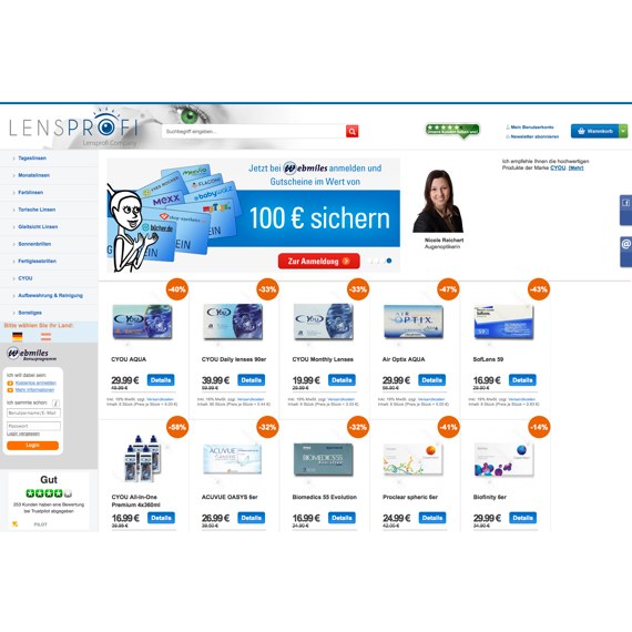 Lensprofi.de - Entscheiden Sie sich für den Kauf preiswerter Kontaktlinsen und sparen Sie bares Geld bei Lensprofi im Vergleich zu Ihrem Optiker