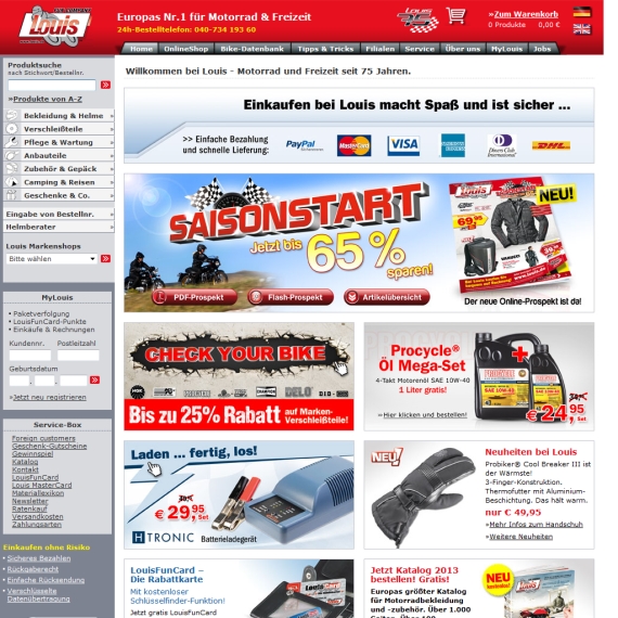 Sie sind ein richtiger Motorradfan oder suchen einen seriösen Anbieter für sämtliches Zzubehör? Dann sind Sie im Online Shop von Louis genau an der richtigen Adresse, denn nicht umsonst erfreut sich dieses renommierte Unternehmen größter Beliebtheit und endlich können Sie hier auch über das Internet einkaufen.