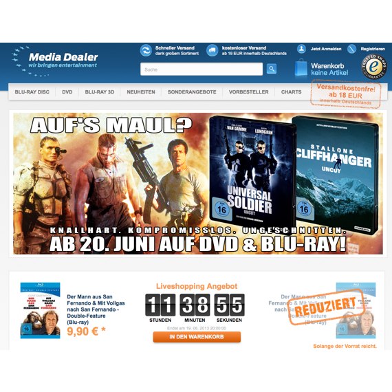 Shoppingtour am besten gleich beginnen können. Schauen Sie sich auch noch bei den Blu-Ray Angeboten um, um nichts zu versäumen, denn Media Dealer überrascht Sie stets aufs Neue!