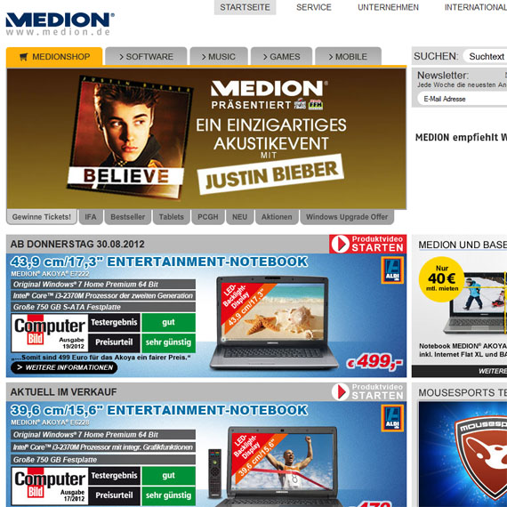 In der heutigen Zeit gehören elektronische Geräte zum normalen Alltagsleben. Entscheiden Sie sich auf jeden Fall für hochwertig verarbeitete Geräte, die nebenbei noch ein ansprechendes Design aufweisen und kaufen Sie im Internet beim online Anbieter Medion ein. Freuen Sie sich über die bezahlbaren und vor allem fairen Preise und füllen Sie Ihren Warenkorb mit den unterschiedlichsten Produkten. Die Marke steht für ein hervorragendes Preis-Leistungs-Verhältnis und erreichte in den letzten Jahren einen hohen Bekanntheitsgrad durch diverse Discounter. Mittlerweile gibt es aber auch im Internet einen eigenen Onlineshop, so dass sich die Kunden hier selbst aussuchen können, was Sie bestellen wollen. Klicken Sie auf die Seite und überzeugen Sie sich selbst von der riesengroßen Auswahl an diversen Produkten von Medion und entdecken Sie anspruchsvolle Extras. Auf keinen Fall sollten Sie die speziellen Verkaufsaktionen verpassen, die Ihnen die Möglichkeit zum Sparen bieten.