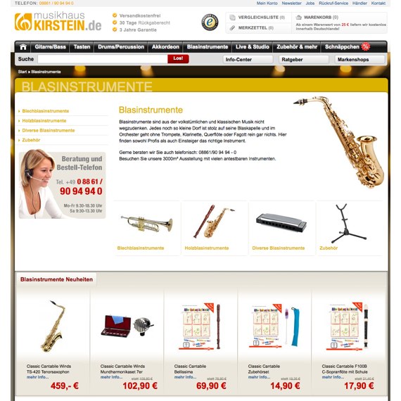 Ganz egal, ob Sie als Hobby musizieren oder ein professioneller Musiker sind – auf der Seite von Musikhaus Kirstein bekommen Sie stets hochwertige Musikinstrumente aller Arten und Modelle und machen ein Schnäppchen, denn hier bezahlen Sie garantiert weniger als bei der Konkurrenz. Bestandskunden halten den Bestellwert durch die entsprechenden Musikhaus Kirstein Gutscheine niedrig, also warum machen Sie es nicht genauso? Für nur wenige Euro können Sie eine tolle Aktion bei den Kontaktgitarren wahrnehmen, denn das Angebot ist stets mit Neuigkeiten bestückt. Klicken Sie sich durch die unterschiedlichen Kategorien, welche Sie oben im Menü aufgelistet vorfinden. Entdecken Sie noch den Bereich für Zubehör und mehr oder schauen Sie in der Schnäppchen Ecke vorbei. Im Informationscenter finden Sie alles, was Sie für Ihren Onlineeinkauf interessiert.