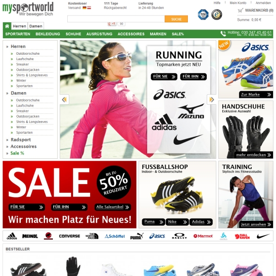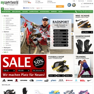 Sportbekleidung & Lifestyle zu finden, denn mysportworld wird Sie in jeder Hinsicht zufrieden stellen. Sie suchen die optimale Sportbekleidung, damit Sie noch mehr Spaß haben? Alternativ können Sie Ihren persönlichen Lebensstil mit diesen tollen Produkten noch verbessern, dazu müssen Sie nicht unbedingt Sport begeistert sein. Begeben Sie sich auf virtuelle Shoppingtour oder klicken Sie sich ganz unverbindlich durch die Angebote, denn hier finden Sie garantiert Inspiration. Füllen Sie bei Bedarf Ihren Warenkorb mit tollen Angeboten und sehen Sie sich bei den Aktionen und Nachlässen um, denn hier shoppen Sie für kleines Geld. Finden Sie sich schnell zurecht, denn die Navigation in diesem einfach aufgebauten Online Shop wird Ihnen leicht fallen. Stöbern Sie nach Herzenslust und Laune und gönnen Sie sich etwas Tolles!