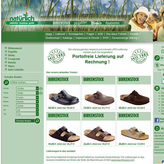 Footprints, Birkis, Papillio, Birkenstock und vielen weiteren mehr, denn Ihnen werden als Kunde keine Grenzen gesetzt. Sehen Sie sich auch bei den heruntergesetzten Artikeln in aller Ruhe um, für den Fall dass Sie auf das Budget achten müssen, denn hier wird bestimmt jeder fündig. Sichern Sie sich tolle Schnäppchen und holen Sie sich genau das Richtige für jede Jahreszeit, denn ganz sicher ist etwas dabei, was Ihren Ansprüchen gerecht wird. Gerne können Sie nach Themen sortiert suchen, wenn Sie sich zum Beispiel über die Lieferzeit, andere Fragen oder Kataloge erkundigen möchten, denn die Seite ermöglicht Ihnen beinahe alles.