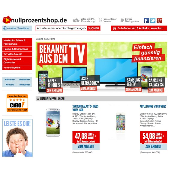 nullprozentshop.de - Finanzieren Sie Elektronikprodukte zum 0-Prozent-Tarif