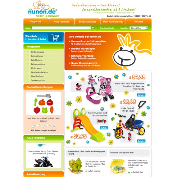 kostenfreie Lieferung in Frage zu kommen. Denn sobald Sie Ihren Warenkorb mit drei unterschiedlichen Artikeln füllen, werden die Produkte von Nunon gratis geliefert, was die meisten Neukunden schnell überzeugt. Der nächste Sommer kommt bestimmt, wie wäre es dann zum Beispiel mit einem aufblasbaren Wasserball zum Spielen? Besorgen Sie Ihrem Kind den ersten Puppenwagen oder schenken Sie Ihrem Liebling bunte Knete zu einigen Prozent Rabatt. Gerne können Sie aus den unterschiedlichen Herstellern wählen, denn bestimmt sind Ihnen Namen wie