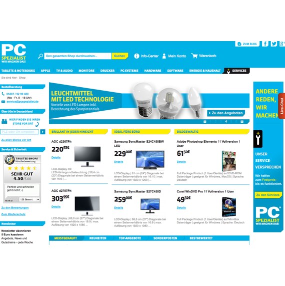 PC Spezialist nicht außer Acht lassen. Treffen Sie Ihre Wahl, denn die Palette an Hardware und Dienstleistungen ist riesig, und sparen Sie sich ein paar Euro durch den niedrigen Bestellwert. Bestandskunden wissen bereits, dass man auch in der Sparte für Notebooks richtig zuschlagen kann, denn es gibt die unterschiedlichsten Geräte in diversen Preiskategorien. Nutzen Sie das virtuelle Angebot und finden Sie tolle Computer in Aktion, die von namhaften Marken wie zum Beispiel