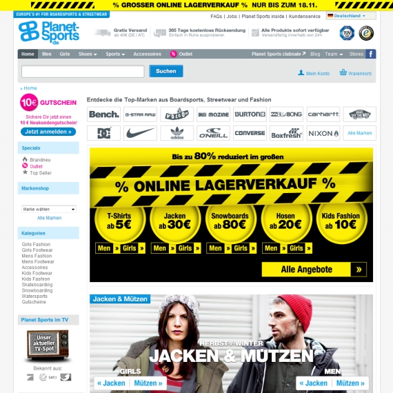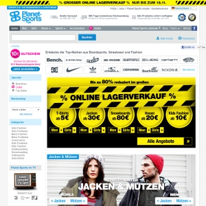 Finden Sie die Marken Ihrer Wahl und kleiden Sie sich immer aktuell. Hier können Sie sich über erstaunlich günstige Preise freuen, also worauf warten Sie noch? Am besten sehen Sie selbst und besuchen die Seite, um erste Eindrücke zu gewinnen. Nehmen Sie sich Zeit, denn das Angebot bei Planet Sports ist riesengroß.
