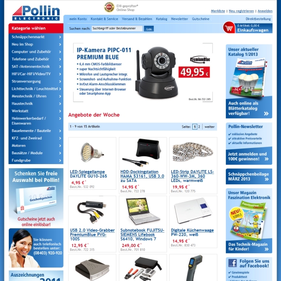 Elektronikartikel aller Art und werden Sie Kunde bei Pollin, denn das Internet offeriert Ihnen zahlreiche Vorteile, wenn Sie über das World Wide Web bestellen. Lassen Sie sich bequem bis nach Hause beliefern, denn dieser Online Shop hält das Richtige für alle Bedürfnisse bereit. Wenn es um das Thema