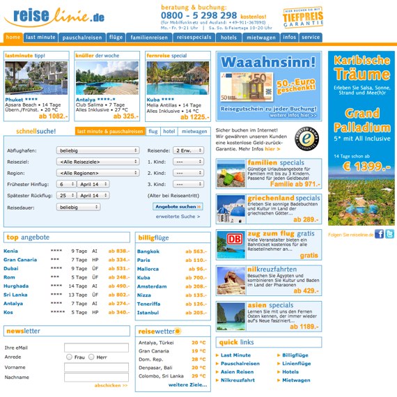 Reiselinie.de - Buchen Sie Ihre Reise bequem im Internet und profitieren Sie von einem hohen Rabatt