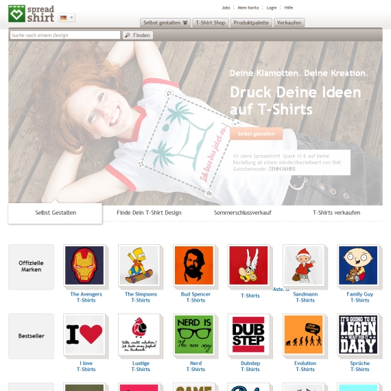 Schauen Sie jetzt gleich auf die Seite von spreadshirt.de, um bei Ihrem nächsten Einkauf viel Geld zu sparen. Das Portal ist nicht umsonst eines der größten und bekanntesten in ganz Deutschland, wenn es um Pullover und Shirts geht, die man selbst gestalten kann. Alternativ können Sie sich als Kunde auch für fertige Motive entscheiden, die es in Hülle und Fülle hier zu finden gibt. Ganz sicher ist für jeden Geschmack genau das Richtige dabei, also worauf warten Sie noch?