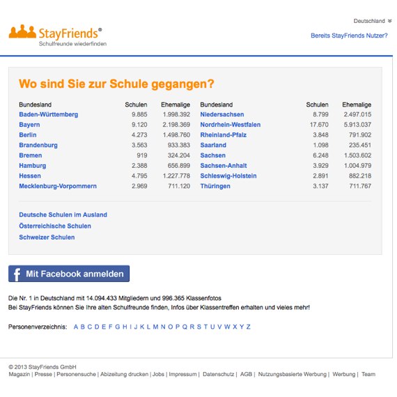 Stayfriends.de - Finden Sie Ihre alten Freunde aus der Schule wieder und organisieren Sie ein Klassentreffen