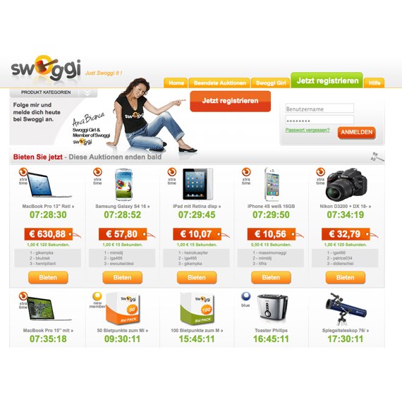 Swoggi.de - Sichern Sie sich Top-Schnäppchen bei den tollen Cent-Auktionen