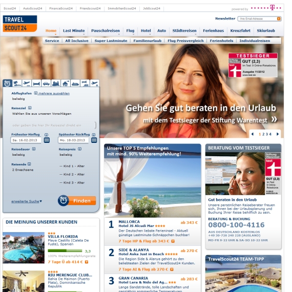TravelScout24, um Ihren optimalen Urlaub Ihrer Träume zu buchen, denn es spielt keine Rolle, ob Sie auf der Suche nach einem tollen Angebot für Pauschalreisen oder Last-Minute-Angeboten sind – dieses Unternehmen wird Sie garantiert zufriedenstellen. Sichern Sie sich die besten Plätze jetzt gleich und fixieren Sie Ihre Buchung am besten sofort, denn sonst nimmt Ihnen jemand anders die besten Plätze weg. Schauen Sie öfter auf der Seite vorbei, denn es zahlt sich aus, wenn Sie sich über neue Angebote und Aktionen im Bereich Reisen und Urlaub informieren möchten. Schonen Sie Ihren Geldbeutel und sehen Sie sich auch noch die Offerte für Familienurlaub an, denn es zahlt sich aus. Alternativ lohnt sich auch ein kurzer Blick in die Rubrik für Individualreisen, denn hier erfüllt man alle Ihre Wünsche. Gerne können Sie einen Flugpreisvergleich online starten, damit Sie schnell erkennen, dass Sie bei TravelScout24 zweifellos den besten Deal machen. So sind Sie schnell im Bilde darüber, dass Sie hier bestens aufgehoben sind, also überzeugen Sie sich am besten selbst. Geben Sie Ihr gewünschtes Reiseziel in der Suchmaske an und nennen Sie Ihren bevorzugten Abflughafen, um prompt ein Ergebnis geliefert zu bekommen.