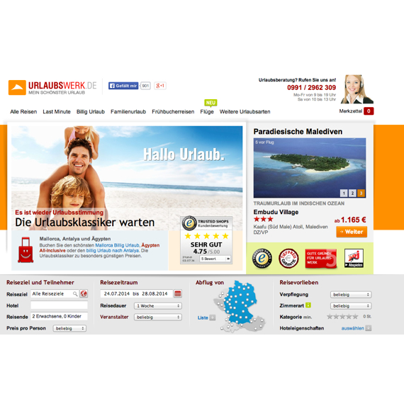 Urlaubswerk.de - Buchen Sie Ihren einmaligen Urlaub bequem im Online-Shop