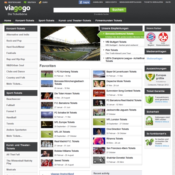 Wenn Sie auf der Suche nach einem Portal sind, wo Sie Ihr Ticket auf sichere Art und Weise verkaufen oder kaufen können, sind Sie bei Viagogo mit Garantie frei von Betrug. Setzen Sie diesen Anbieter, denn auf diesem Portal werden Sie immer besten Kundenservice erleben und können sich gleichzeitig den größten Ticket-Marktplatz von ganz Europa zu Nutze machen. Das Portal ist insgesamt in 46 Ländern weltweit vertreten, also warum zögern Sie noch? Hierbei handelt es sich um einen reinen