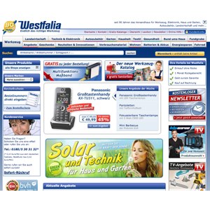 Online Shop von Westfalia bestens aufgehoben und genießen Sie die zahlreichen Vorteile, welche Ihnen hier offeriert werden. Das Unternehmen glänzt mittlerweile seit 35 Jahren auf dem Markt für Werkzeuge, so dass Sie sich stets über besten Warenwert im Angebot freuen können. Verwenden Sie Ihre Gutscheincodes, die noch gültig sind und kaufen Sie mit Ihrem Gutscheinwert ein. Machen Sie bei Bedarf von Ihrem einmonatigen Rückgaberecht Gebrauch und shoppen Sie sicher, denn Sie haben stets die Geld-zurück-Garantie. Gerne können Sie auf Rechnung bestellen und selbstverständlich ohne Mindestbestellwert, also worauf warten Sie noch? Sichern sich zusätzliche Nachlässe durch Ihre exklusiven und persönlichen