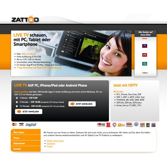 Zattoo.com - Schauen Sie direkt an Ihrem Computer kostenlos Fernsehen in einer beeindruckenden HD-Qualität