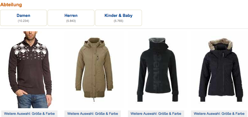 Der derzeitige Sale im Bereich der Bekleidung verspricht Ihnen Ersparnis von bis zu 60 Prozent. Für Damen, Herren, Kinder und Babys finden Sie im Online Shop von Amazon mehrere Tausend verschiedene Artikel der Markenhersteller Bench, Esprit, Desigual oder auch Jack & Jones. Entscheiden Sie sich dabei für Blusen, Hemden, Jacken, Mäntel, Kleider, Hosen, Röcke, Shirts oder auch Pullover und statten Sie sich komfortabel von Kopf bis Fuß aus. Sie werden begeistert sein, wie viele unterschiedliche Kleidungsartikel bei Amazon zur Bestellung für Sie bereitstehen. Verwenden Sie also unbedingt die intuitive Filterfunktion und sorgen Sie dafür, dass Sie nur die Bekleidung angezeigt bekommen, die Sie auch benötigen.
