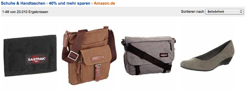 Dasselbe Einsparpotenzial erhalten Sie auch bei Schuhen und Taschen aller Art im Online Shop von Amazon. Kaufen Sie eine einmalige Tasche von Converse, Tom Tailor, Eastpak oder Buffalo und freuen Sie sich auf eine qualitativ hochwertige Verarbeitung, die Sie mit hoher Wahrscheinlichkeit zu schätzen wissen. Natürlich erhalten Sie auch viele verschiedene Schuhmodelle zum besonders günstigen Aktionspreis bei Amazon. Von Marco Tozzi über Birkenstock und Bugatti bis hin zu Camel, Ecco, Esprit und K-Swiss sind auch hier alle bekannten Marken vertreten. Somit finden Sie ganz bestimmt Ihr favorisiertes Modell für die anstehende Frühlingssaison bzw. den Sommer.
