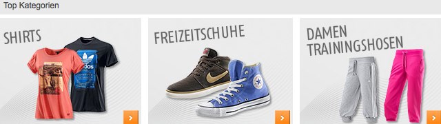 Damit Sie für Ihre Sportart stets optimal ausgerüstet sind, sollten Sie unbedingt auf Mode renommierter Markenhersteller setzen, deren Artikel sich bereits seit vielen Jahren bewährt haben. Im Online Shop von SportScheck finden Sie genau die Produkte, die den Unterschied machen können und zudem auch bei Profis gefragt sind. Neben hochwertiger Sportmode können Sie sich aber ebenso auf tolle Freizeitmode der Marken Adidas, Nike oder Bench freuen. Nehmen Sie sich also ein paar Minuten Zeit und stöbern Sie ein wenig im Angebot von SportScheck!