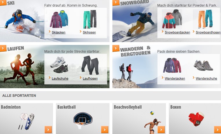 Haben Sie bereits eine bestimmte Marke, auf deren Produkte Sie seit Jahren vertrauen, dann empfehlen wir Ihnen die Markenshops im Online-Angebot von SportScheck. Dort bekommen Sie dann stets alle zur Verfügung stehenden Verkaufsartikel präsentiert, die von einer bestimmten Ware erhältlich sind. Aber auch hier empfiehlt sich trotz recht günstiger Preise ein umfassender Preisvergleich mit den Angeboten anderer Online-Händler. Hierzu können wir Ihnen auf jeden Fall den Online Shop von Keller Sports ans Herz legen. Passende Gutscheine erhalten Sie natürlich auch hier im Portal, was ebenso auf alle übrigen Webshops der Rubrik Sport & Fitness zutrifft. Probieren Sie es aus und sichern Sie sich stets den mit Abstand günstigsten Preis im Internet.